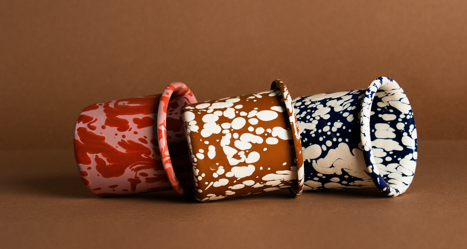 Enamel is made from natural materials: a steel core is covered with molten glass, hand-painted and fired in a kiln. This creates tasteful, smooth and colorful surfaces. Each of our objects is a unique, handmade piece.