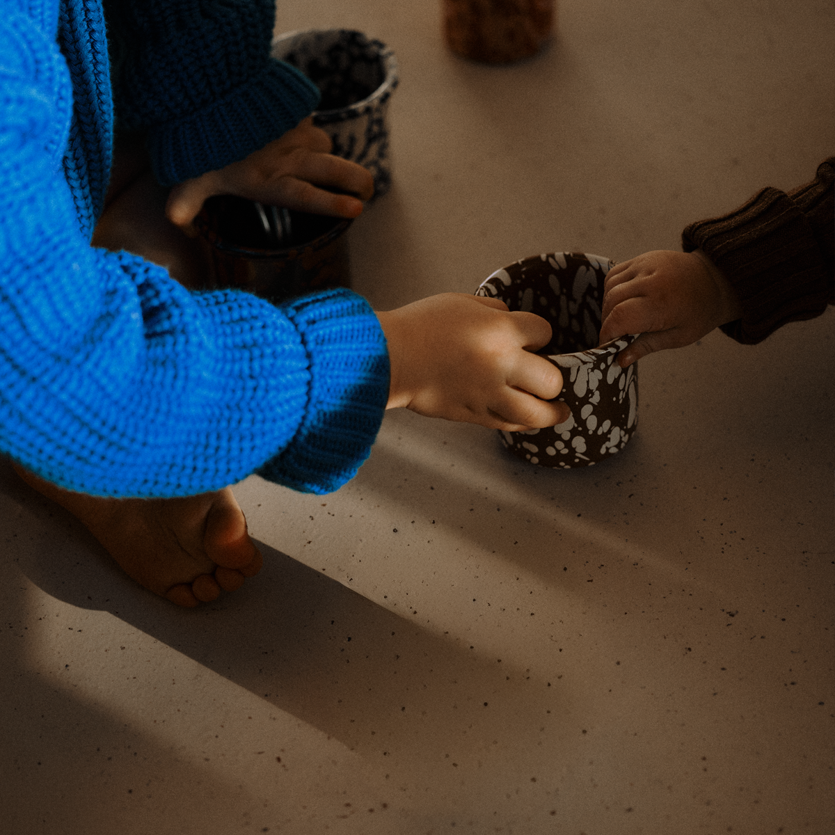 À la recherche d'une meilleure solution, nous sommes tombés sur le vieux pichet en émail de Grosi. Un objet qui a résisté à des décennies, sans toxines, sans fioritures : âme en acier, revêtement en verre, cuit au four. Robuste, de bon goût, multifonctionnel – et plus honnête que tout ce que nous avions. Cette simplicité nous a inspirés et avec la naissance de notre deuxième fils en 2025, nous avons décidé : nous ramènerons l'émail sur la table.